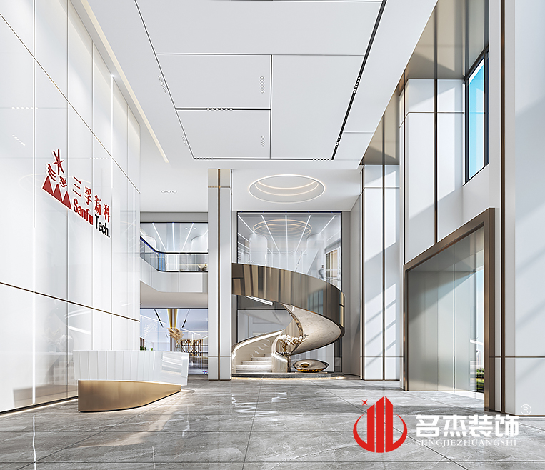 整體辦公室裝修設(shè)計(jì)當(dāng)中加入了很多不同的造型,讓空間變得更加有設(shè)計(jì)感。展廳區(qū)域則使用弧形吊頂造型,讓流動(dòng)路線跟著弧線走,起著一個(gè)引導(dǎo)的作用,有著更深的沉浸感。螺旋式樓梯因其流線造型美觀,且有著典雅的氣息,深受客戶(hù)的喜愛(ài)。休閑區(qū)域則使用較為傳統(tǒng)的樣式,綠植,鵝卵石鋪墊的過(guò)道,空間中無(wú)處不透露著中式典雅的風(fēng)格。