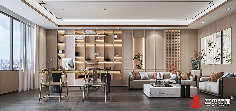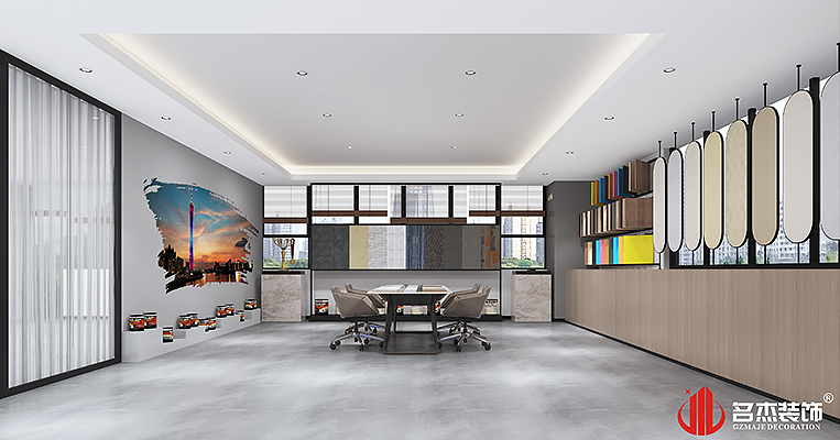 整體辦公裝修設(shè)計空間加入了造型柜子來增加空間的層次感,同時也為空間的儲物做出一個不錯的設(shè)計。加入不同的造型燈光,可以讓空間中的氛圍感更加有趣。空間也加入了該企業(yè)的材料來讓企業(yè)文化更加濃郁。