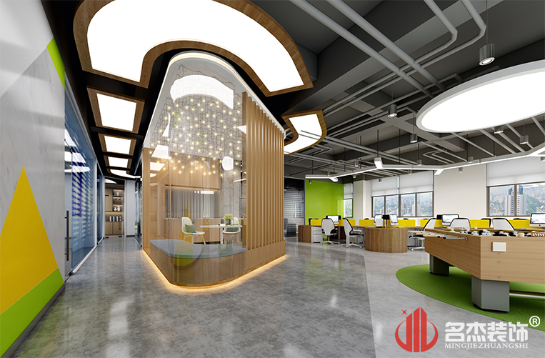 前臺運(yùn)用大量的不規(guī)則圖形和線條來確定整體的時尚現(xiàn)代風(fēng)格,勾勒出一種不規(guī)則的美。整個辦公室裝修設(shè)計風(fēng)格里面也有所體現(xiàn),突出企業(yè)文化,新材料公司辦公室裝修就是要打破常規(guī),不走尋常路。