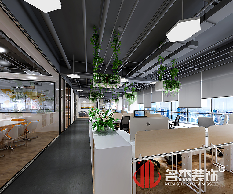 整個(gè)空間都充滿(mǎn)了綠色環(huán)保的氛圍,很好的將企業(yè)文化和企業(yè)元素加入到整體的辦公室裝修中,讓人時(shí)刻感受到該企業(yè)的文化。綠色元素的加入,再用橙色作為點(diǎn)綴色,使得整個(gè)空間顯得更加的有時(shí)尚感。
