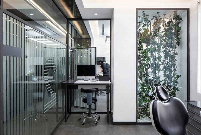 極簡卻不簡單的風(fēng)格,全程用和白色調(diào)和線性打造極簡造就寬敞,由于診所檢查室和消毒室的緊密結(jié)合,房間隔板之間放置的玻璃和植物使整個空間看起來更加寬敞透明。憑借這種透明的外觀,診所的房間更加寬敞,可以提供更廣闊的視野。由于這個原因,這些房間顯得更有深度。