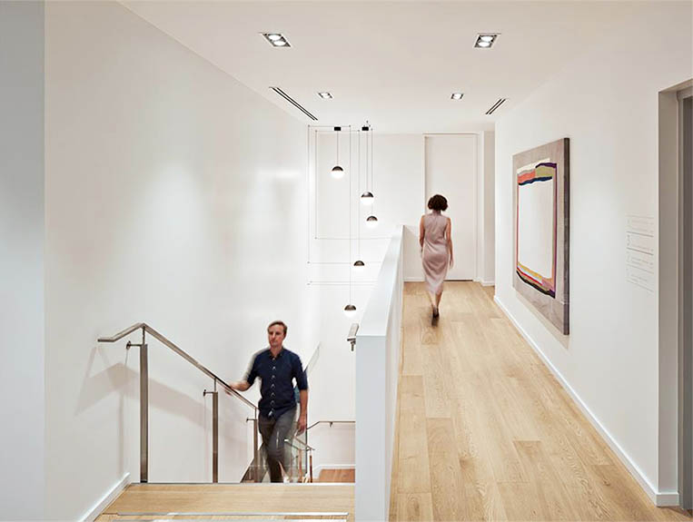 設(shè)計(jì)師通過(guò)簡(jiǎn)單的方式實(shí)現(xiàn)了優(yōu)雅:天然白櫟木溫暖的空間,墻壁上的淡灰色調(diào),天然石材,堅(jiān)固的表面材料和家具,為干凈的白色環(huán)境增添了一層復(fù)雜的深度。