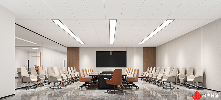 設(shè)計團(tuán)隊(duì)根據(jù)現(xiàn)場實(shí)際情況,定制前臺區(qū)域的方式,使用企業(yè)LOGO色來作為空間的點(diǎn)綴。河流狀態(tài)的橙色造型,寓意著業(yè)務(wù)川流不息。而在展廳區(qū)域則是使用傳統(tǒng)方圓的設(shè)計手法,使用灰色的色調(diào)搭配流動的燈帶造型,凸顯出該空間的不平凡。#廣州辦公室裝修#