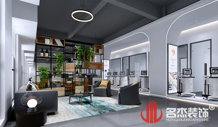 本案例是以美容儀器產(chǎn)品為主的企業(yè),主要以傳統(tǒng)的灰白色調(diào)作為主基調(diào),恰當(dāng)?shù)牡胤绞褂靡恍┗钴S的顏色來使整個空間變得更加鮮明。休閑區(qū)則以暖色調(diào)為主,能讓人從視覺和體感上感受到輕松愉悅
