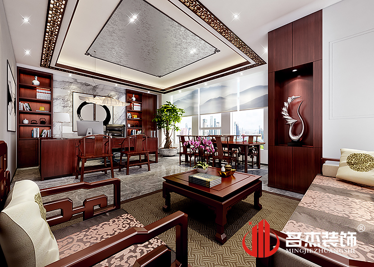 在本案例中設(shè)計師充分利用了來自窗外的自然光線,為辦公室賦予靈動的生命力,由于主營業(yè)務(wù)是為企業(yè)客戶和社會中上階層,故整體設(shè)計以現(xiàn)代簡約和現(xiàn)代中式為主,美麗大方,空間感藝術(shù)感俱佳。設(shè)計布局規(guī)整,中軸對稱設(shè)計體現(xiàn)出大公司獨(dú)有的作風(fēng)與魄力,空間設(shè)計打破傳統(tǒng)辦公設(shè)計,以玫瑰金,大理石為主,通過各種創(chuàng)新的方法運(yùn)用不但拉近了人與人之間的距離,也更享受多功能化、智能化和人性化模式。