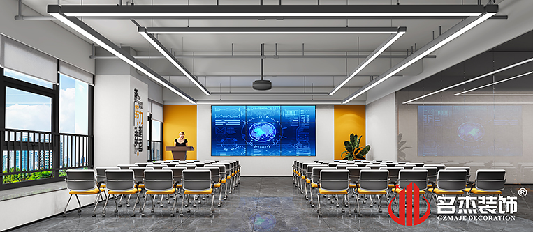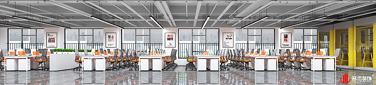 整體的辦公裝修設(shè)計空間采用的是時尚簡約風(fēng)格,大量的使用logo色讓空間不再單調(diào)的同時,還能增加整體空間的設(shè)計層次感。采用弧形玻璃隔斷為的就是增加設(shè)計的設(shè)計感,也讓空間綻放出不一樣的設(shè)計感。