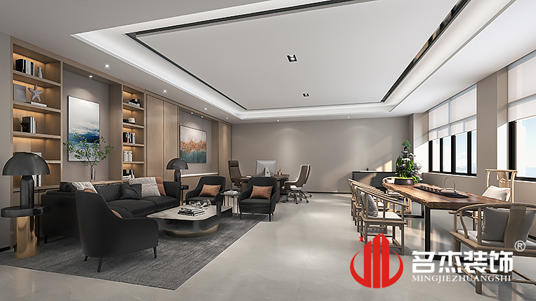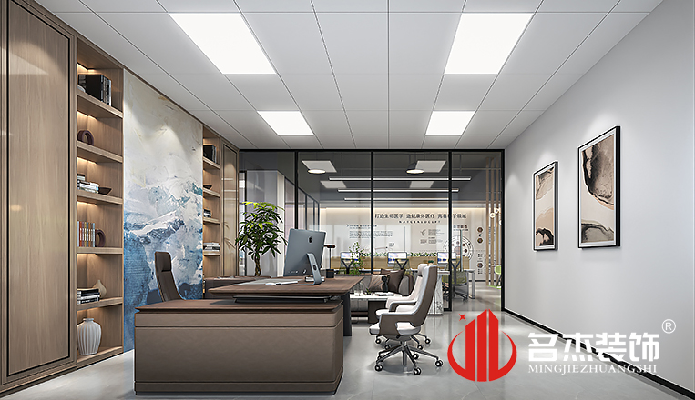 整體使用原木色調(diào)的材料來奠定現(xiàn)代簡約的風(fēng)格,在辦公區(qū)域使用綠色作為點(diǎn)綴色,讓自然的元素加入到整體辦公室裝修設(shè)計當(dāng)中,從而引申出一種親近自然的氛圍。總經(jīng)理室里面加入茶室和接待的功能,在接待重要客戶的時候起到一個非常不錯的效果。