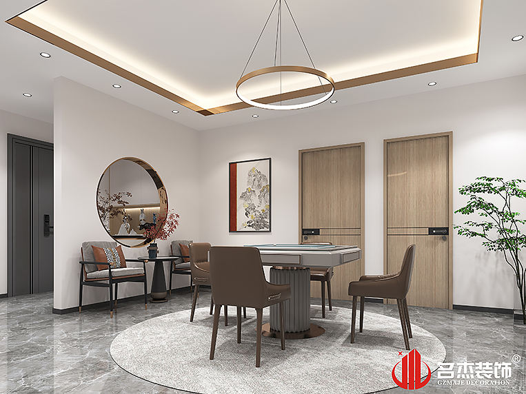 前臺區(qū)域使用有規(guī)律的線條和弧形元素進(jìn)行混搭,創(chuàng)造出一種強(qiáng)烈的時尚感,而這樣方式也出現(xiàn)在茶室上面,通過不規(guī)則的設(shè)計手法,輔以燈帶作為裝飾點綴,展示出該企業(yè)想要突破傳統(tǒng)的想法。同時空間設(shè)計中,對于金色的使用,也是較為大膽的,多個區(qū)域中都使用到,運用恰到好處,讓空間有種輕奢的氛圍。