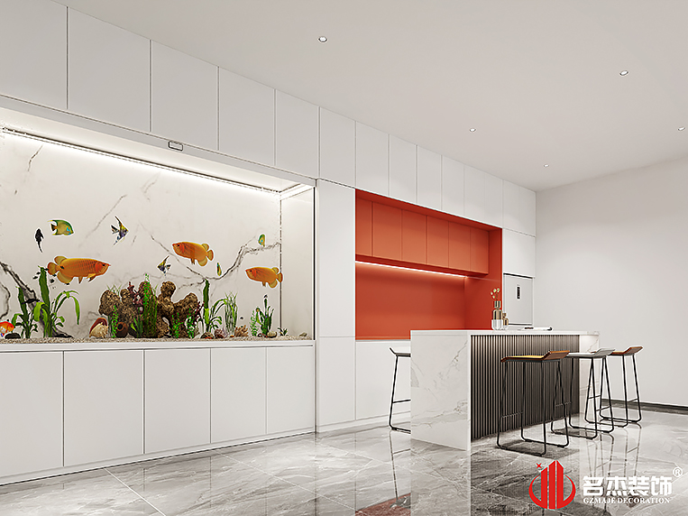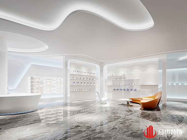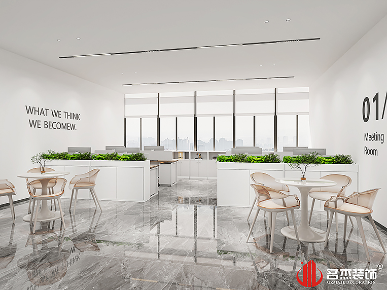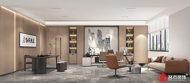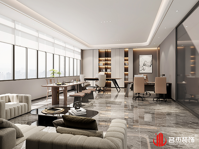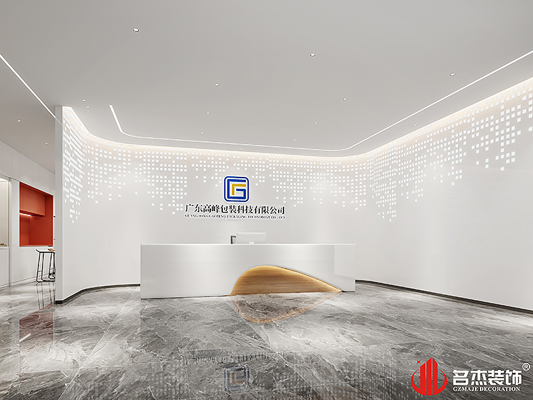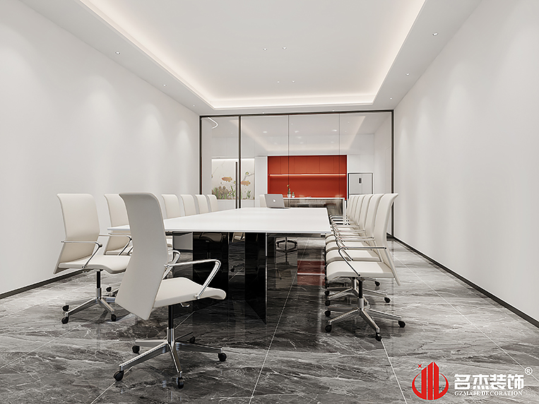 在前臺區(qū)域使用沖孔鋁板作為前臺背景的點(diǎn)綴元素,讓傳統(tǒng)的背景墻不再單調(diào),突顯出該企業(yè)敢于突破的精神,同時沖孔鋁板和弧形元素的搭配也能夠讓人感到眼前一亮。而且在多個區(qū)域中使用Pantone赤色作為點(diǎn)綴色調(diào),讓其辦公裝修設(shè)計空間變得更加有亮點(diǎn)。展廳吊頂則是使用線條走向來引導(dǎo)整個動線的設(shè)計,讓進(jìn)入其中的人能夠感受到設(shè)計團(tuán)隊(duì)的用心。