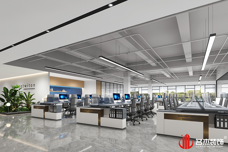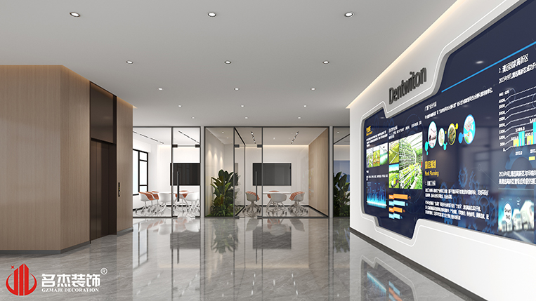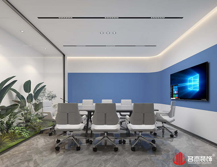 整體使用時尚簡約的風格,讓辦公空間看起來更加簡潔,同時在不同區(qū)域使用藍色作為點綴色,給空間增添了幾分科技感的同時,也讓空間變得不那么單調。前臺區(qū)域使用圓弧造型的吊頂,搭配弧線形的背景墻,形成一種呼應的同時,還能夠增加前臺空間的層次感。在辦公區(qū)域使用藍色噴漆,區(qū)別于傳統(tǒng)的黑白灰,讓空間更加具有辨識度。