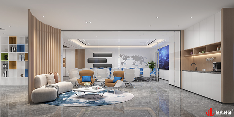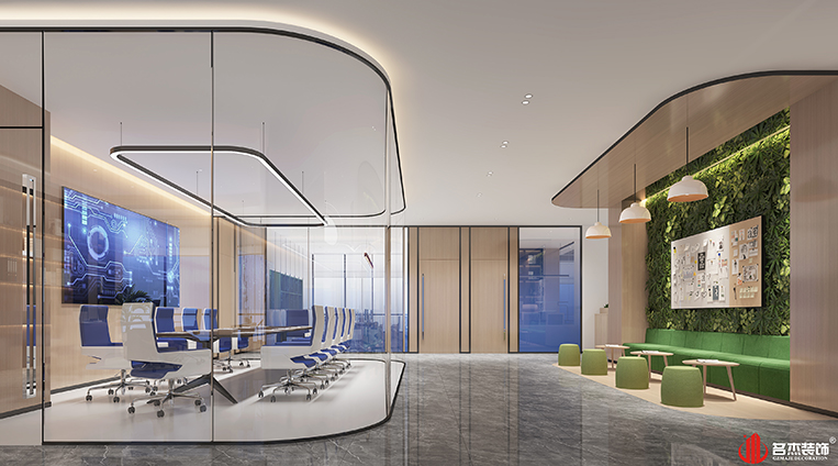 整體風(fēng)格是按照時(shí)尚簡(jiǎn)約來(lái)作為空間的主打風(fēng)格,加入科技元素作為點(diǎn)綴,讓時(shí)尚簡(jiǎn)約的空間變得更具未來(lái)感,同時(shí)在空間使用企業(yè)的logo色,讓空間的企業(yè)文化氛圍感更加深刻,也讓空間更具有未來(lái)感。在展廳區(qū)域使用弧形元素,搭配科技感,在整體設(shè)計(jì)上形成一個(gè)呼應(yīng),也突出該企業(yè)所在行業(yè)的特色,也能夠給來(lái)訪的客戶留下深刻的印象。#廣州辦公室裝修設(shè)計(jì)#