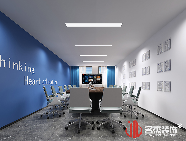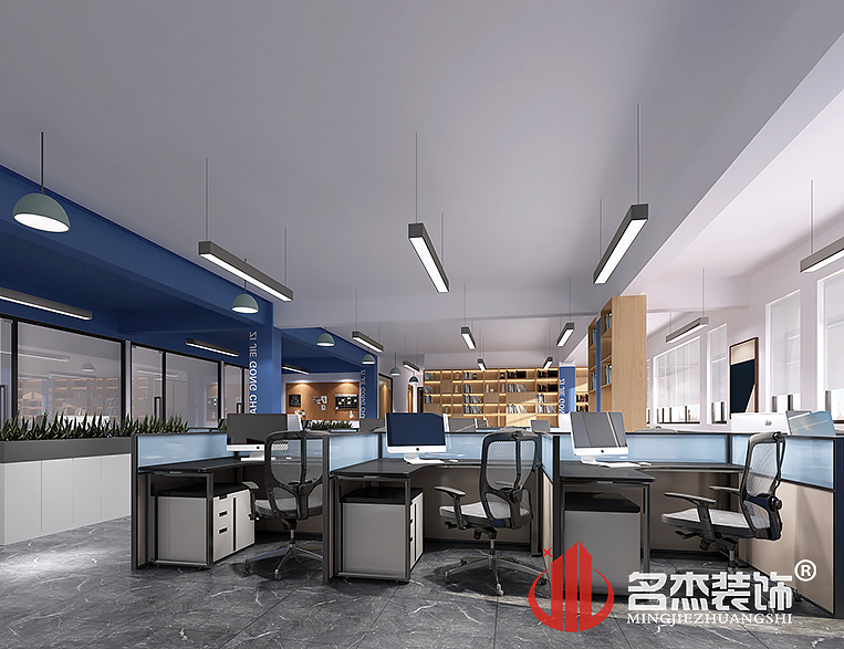 整體的辦公區(qū)域加入了藍色色調(diào)作為跳色的設(shè)計元素,也與企業(yè)LOGO的顏色相互呼應(yīng)。部分區(qū)域也采用了弧形元素來增加整體的設(shè)計感,讓整個辦公室裝修設(shè)計更加具有時尚感。
