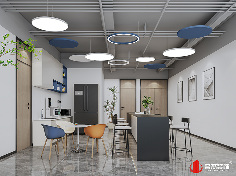 該企業(yè)是以電子、通信與自動(dòng)控制技術(shù)研究、開發(fā);電子工業(yè)專用設(shè)備制造為主的信息科技型企業(yè)。設(shè)計(jì)團(tuán)隊(duì)和客戶溝通后,結(jié)合客戶的需求以及行業(yè)特色,使用時(shí)尚簡(jiǎn)約的風(fēng)格來作為這次主導(dǎo)設(shè)計(jì)風(fēng)格。將企業(yè)的logo色加入到整體設(shè)計(jì)當(dāng)中,讓企業(yè)文化能夠隨處可見,同時(shí)企業(yè)logo藍(lán)色的加入也讓空間充滿了一絲科技的氛圍感。