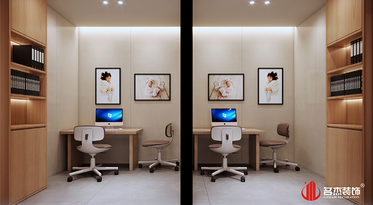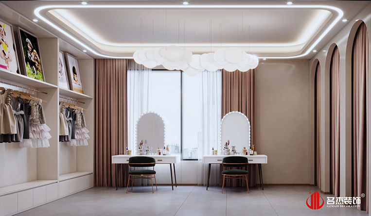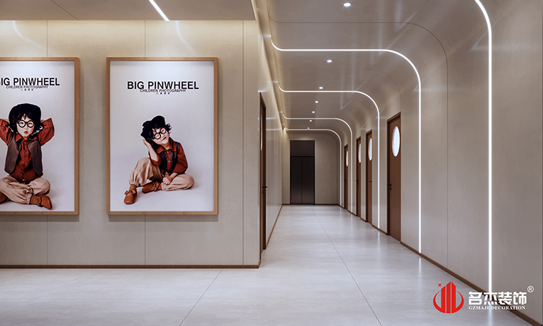 設計團隊在前臺區(qū)域使用比以往更多的圓弧形元素來作為辦公室裝修設計空間的主打設計要素,來避免孩子們碰傷的可能性,這樣的做法也是能夠讓空間的設計感更加強烈。家具的選擇上面也是選擇較為百搭的白色和原木色作為主要方向,呼應空間的同時,還能夠增加空間的設計層次感。而其他區(qū)域則是選擇較為常規(guī)的做法,通過對材質的選擇,打造出不同以往的設計風格。整體空間給人的感覺就是舒適,簡約而不簡單,同時也能夠符合兒童攝影的定位。