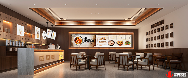 設(shè)計團隊采用新中式的風格來作為這次店鋪裝修設(shè)計空間的主打風格,對于傳統(tǒng)元素的應用,設(shè)計團隊也是很好的將其融入到整個設(shè)計當中,在天花造型上恰當加入中國結(jié)的元素,讓其能夠更加的突出傳統(tǒng)氛圍。同時在外立面也加入了傳統(tǒng)屋檐的設(shè)計手法,讓傳統(tǒng)氛圍變得更加濃郁。#店鋪裝修設(shè)計#